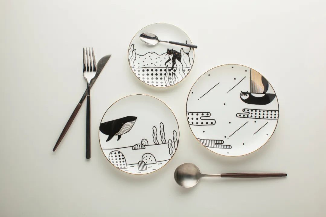 设计师说:这套碟子的灵感来自于我小时候看过的一本书——日本的畅销儿童书《窗边的小豆豆》,其中一章讲述便当的内容颇有意思,巴学园的校长为了纠正孩子们挑食的毛病,特意把午餐定为“山的味道”“海的味道”,并教会孩子们辨别属于山和海的味道。而这个系列我恰恰希望用“海的味道”“山的味道”“空的味道”诠释这套自然之碟,让这些灵性的动物们带你穿梭在食物的海洋中。这也让孩子们的好奇心得到满足,使每一次吃饭都充满了乐趣和诗意,让每一次吃饭都充满了情怀。