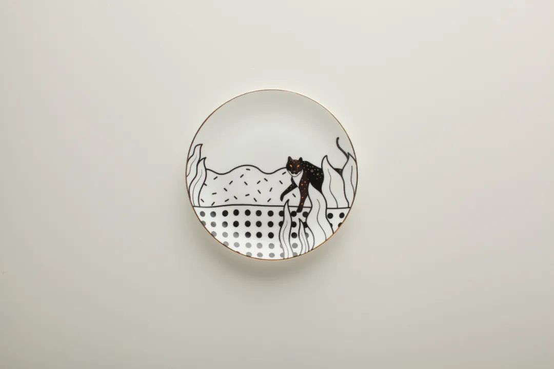 (设计师给餐盘里绘制了一头小豹子,麻麻们可以在盘子里放上山的味道的食物)