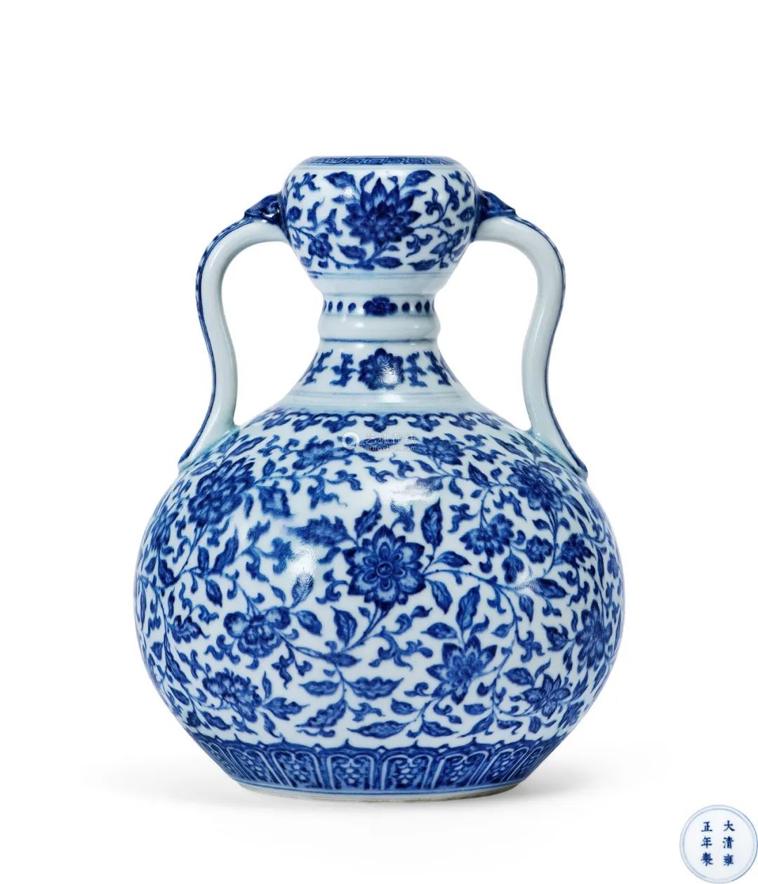 ▲ 仿 青花缠枝莲纹绶带耳如意瓶