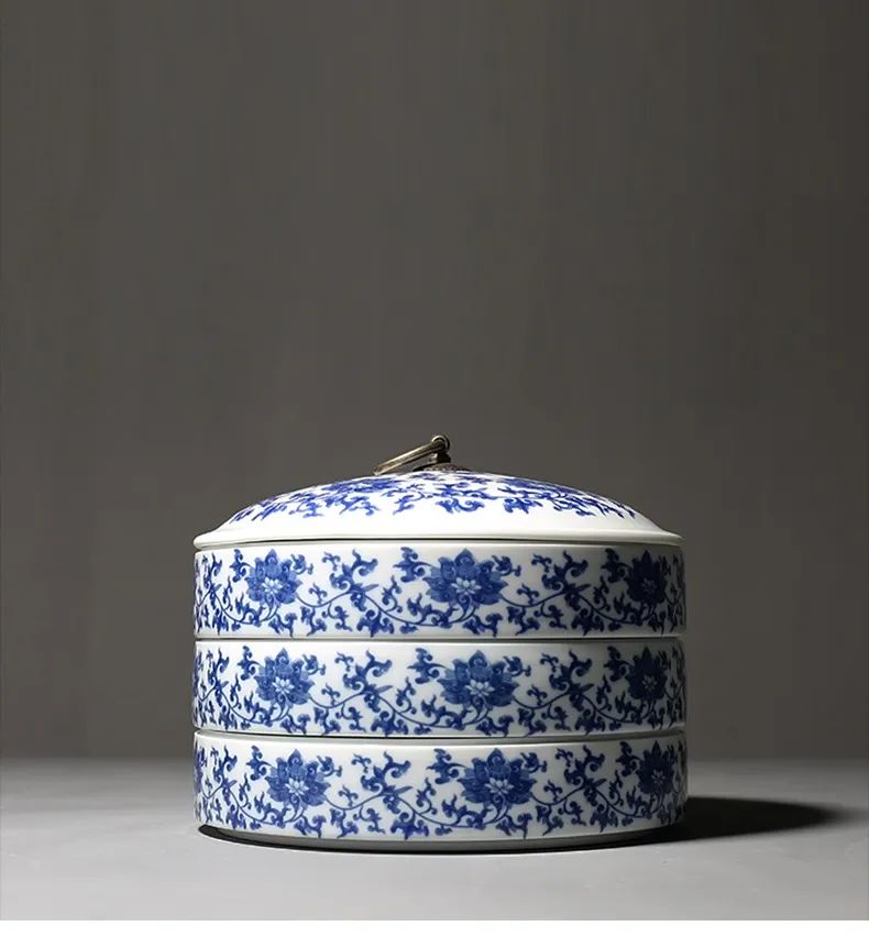 ▼手绘青花莲纹普洱茶仓 出自望龙柴窑